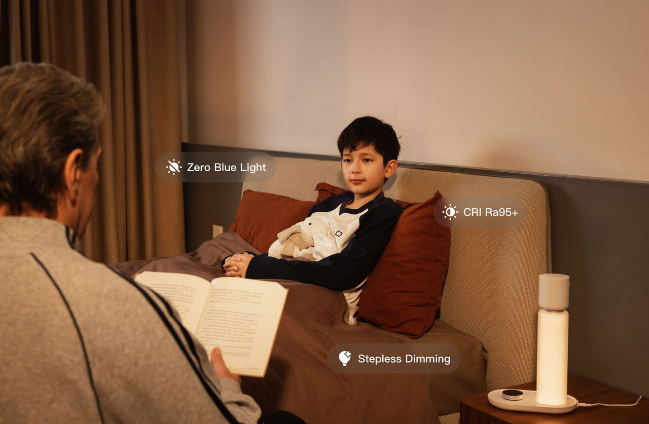The Ra95+ full-spectrum illumination renders colors with natural accuracy, while the rg0 zero-blue light technology minimizes stimulation to support a calmer, more sleep-friendly evening environment.