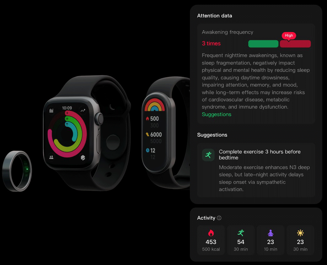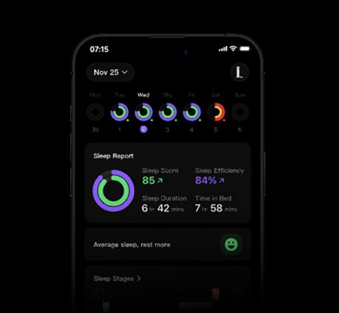 Powered by dedicated sensors that track light, noise, and temperature-humidity conditions, showing how your environment shapes your sleep.