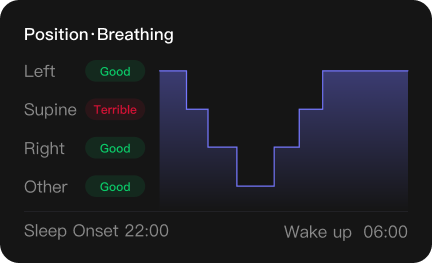 Sleepal understands sleep posture and nighttime behaviors throughout the night, offering valuable insight for individuals with OSA or breathing disruptions — helping support calmer breathing and more restorative rest.